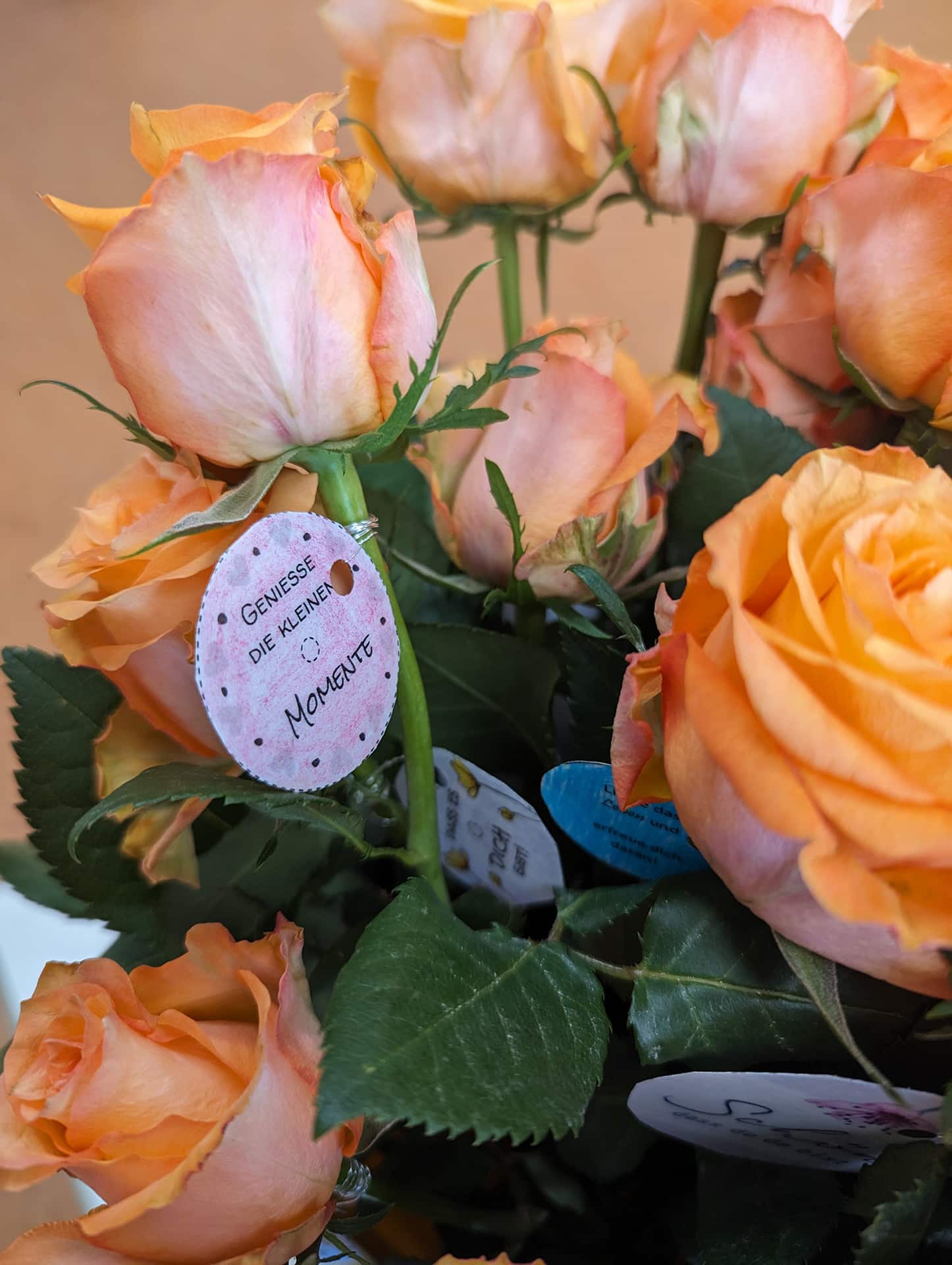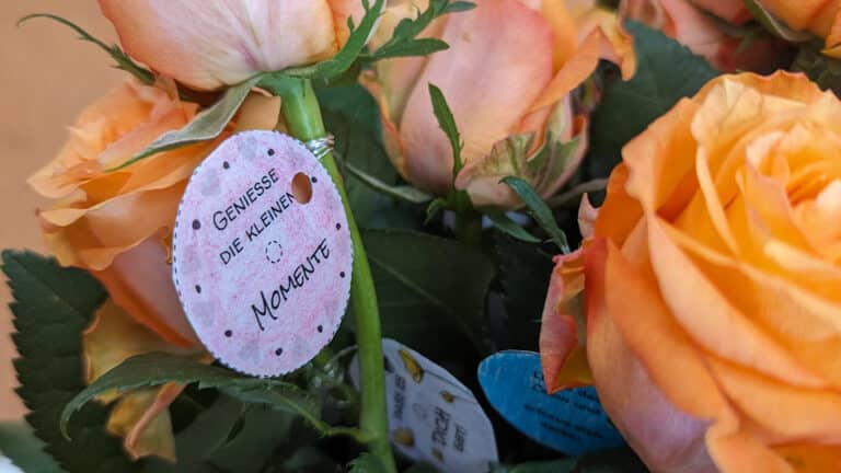Zudem zauberten die Lernenden mit dem beruflichen Schwerpunkt ‚Gartenbau‘ den Gästen ein Lächeln auf die Lippen, indem sie Rosen mit positiven Sprüchen verteilten.