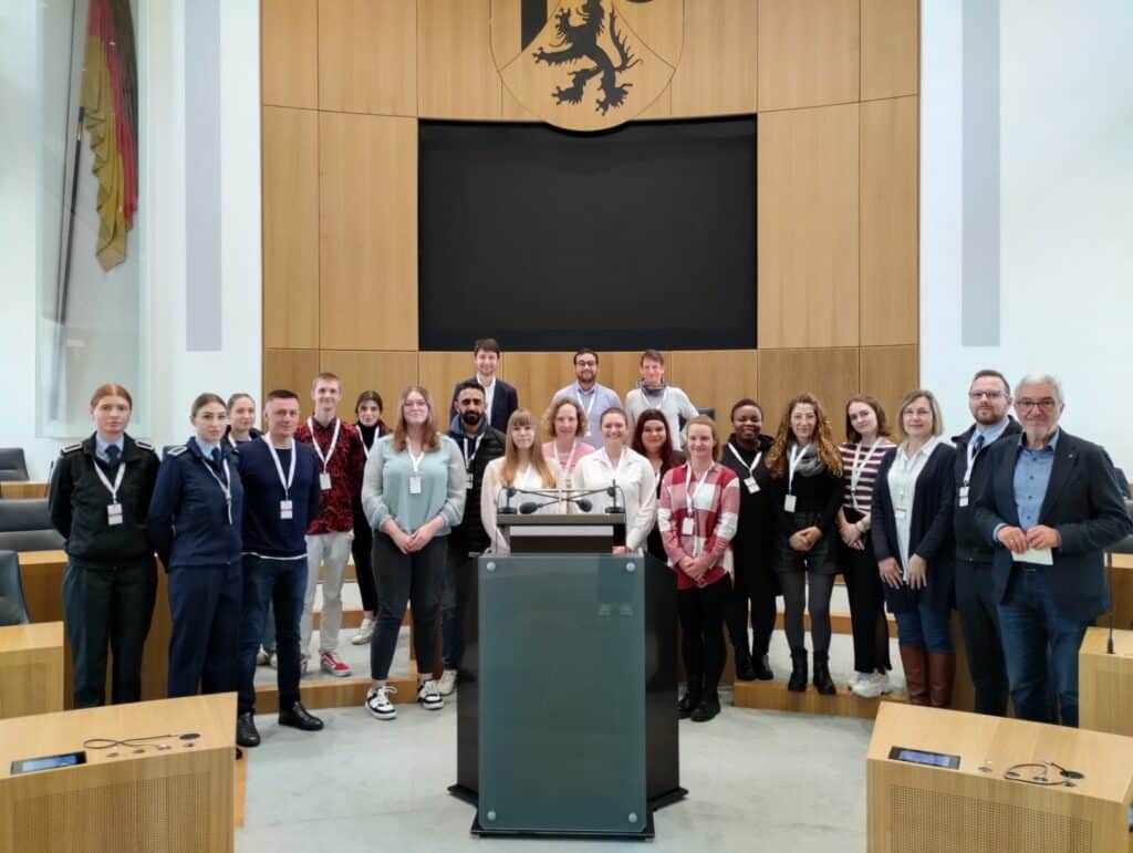 Nach einleitenden Grußworten durch den Koblenzer Oberbürgermeister David Langner und den Schulleiter Carsten Müller sowie der Begrüßung der Ehrengäste Elke Preißinger (ADD Koblenz) und Detlev Pilger (ehemaliges Mitglied des Bundestags) begann für alle anwesenden Schülerinnen und Schüler unter Begleitung ihrer Lehrerinnen und Lehrer ein vielfältiges Programm. So berichteten Abgeordnete des EU-Parlaments (Karsten Lucke), des Bundestags (Dr. Thorsten Rudolph) und des Landestags (Fabian Ehmann) aus ihrem Alltag in den Parlamenten. Zudem informierten Referentinnen und Referenten der Gewerkschaft Nahrung-Genuss-Gaststätten zur betrieblichen Mitbestimmung.