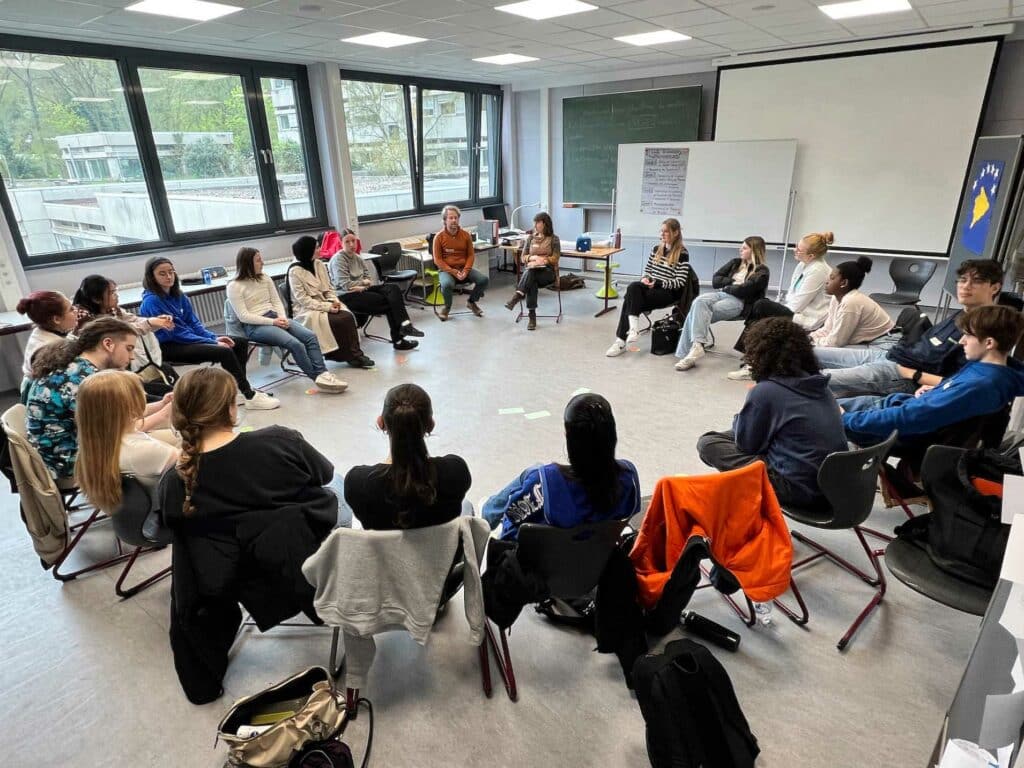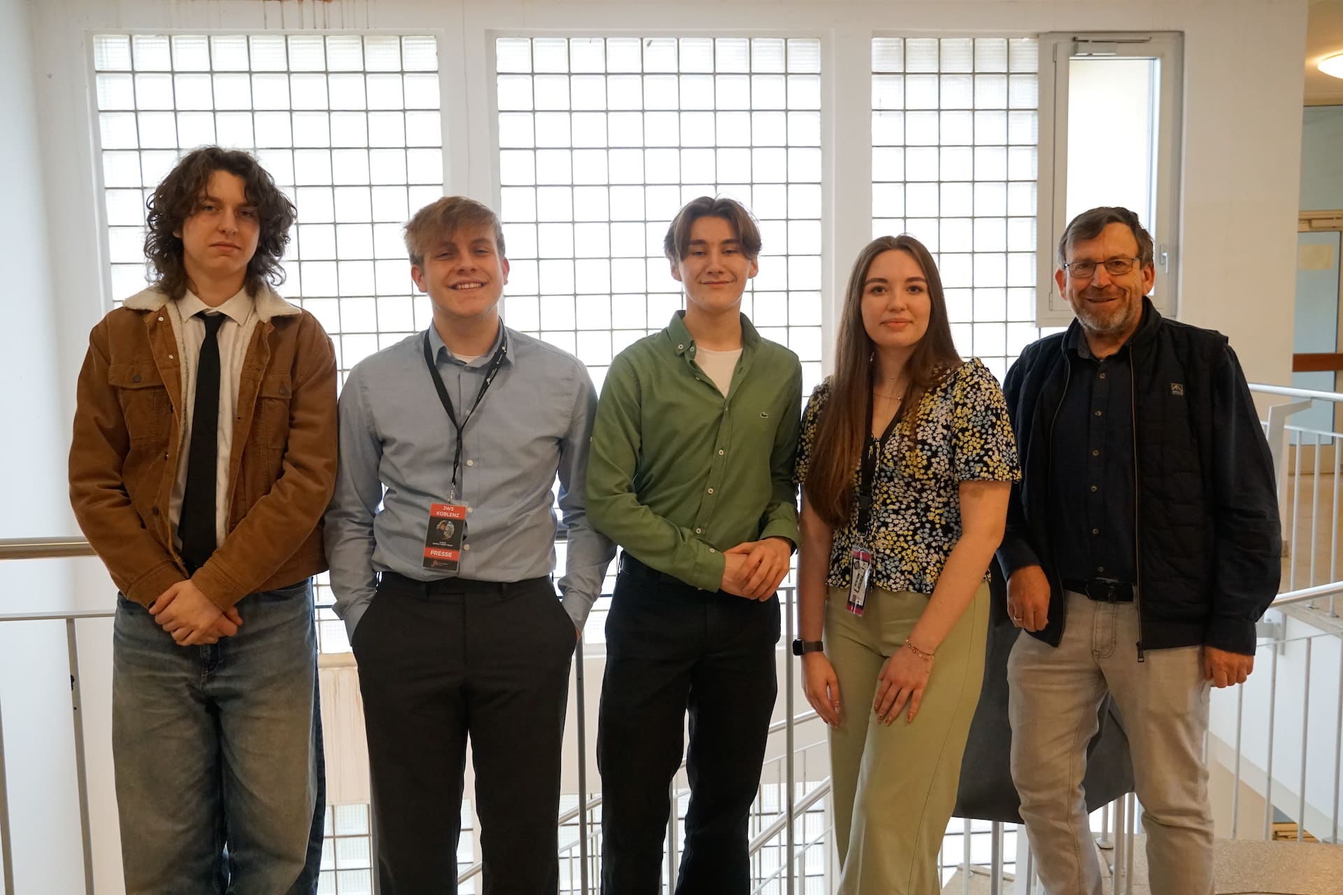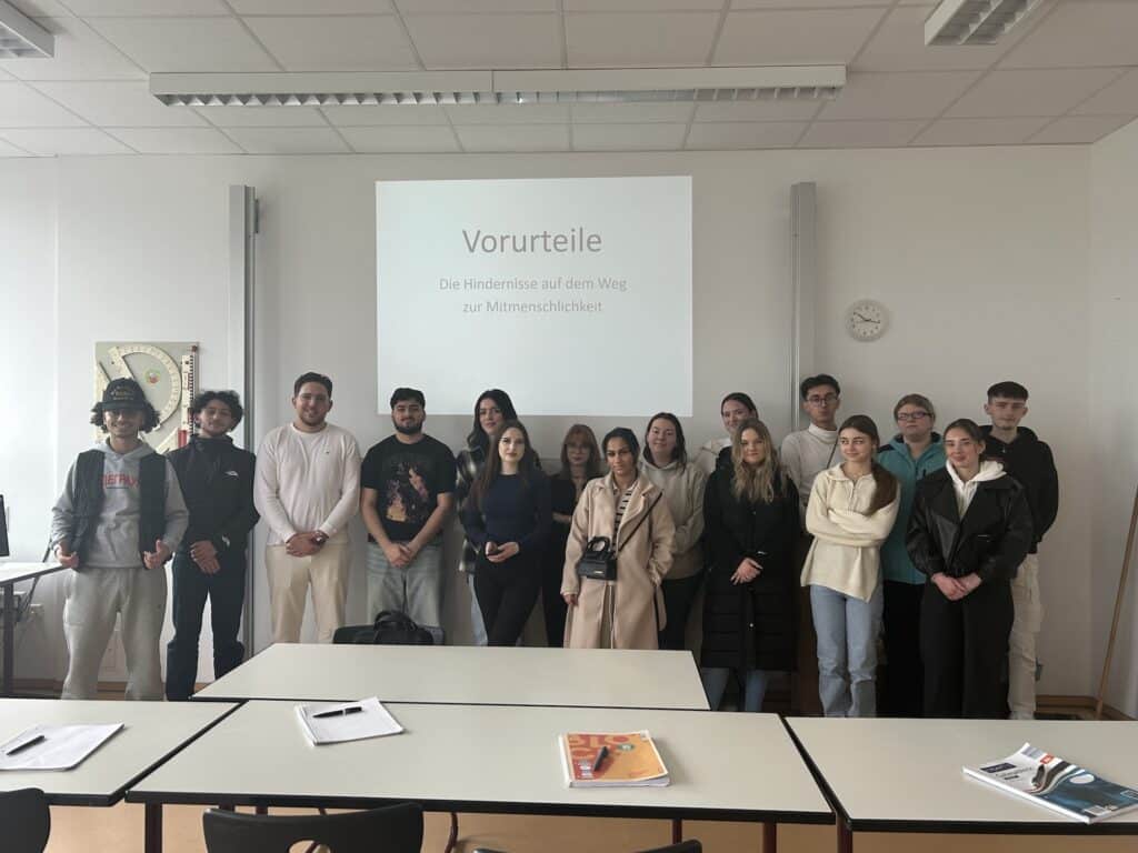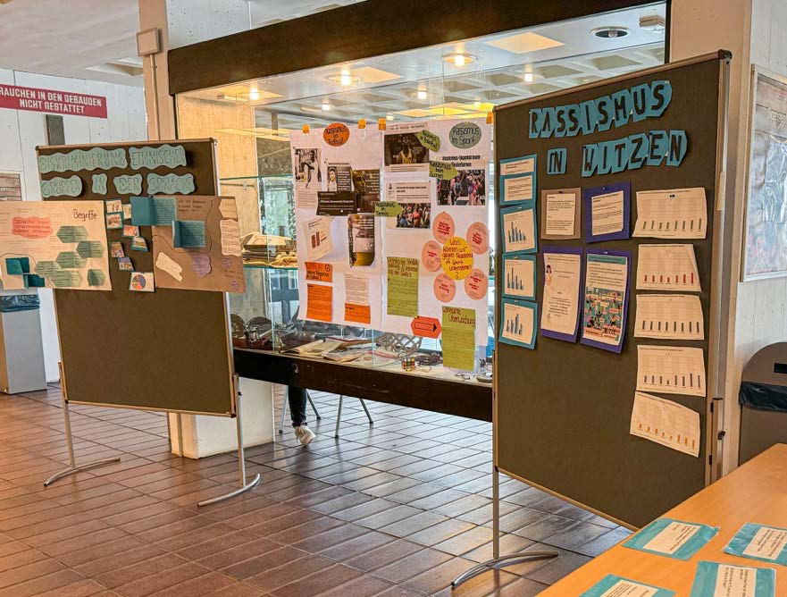 Ein weiterer Höhepunkt waren die Besuche der DDR-Zeitzeugen Elke Schlegel und Jochen Stern, die eindrucksvoll von ihren Erlebnissen unter anderem als politische Gefangene berichteten. Darüber hinaus fanden Workshops, Planspiele und Diskussionsrunden zu Themen wie beispielsweise „Fake News und Hatespeech“, „Algorithmen und Demokratie“, „Was, wenn Rechtsextreme regieren?“ oder „Vorurteile, Rassismus und Antisemitismus“ entweder angeleitet durch Lehrkräfte der Julius-Wegeler-Schule oder mit externer Unterstützung durch die Amadeu-Antonio-Stiftung und das Europahaus Bad Marienberg statt. Eine Klasse erstellte eine Ausstellung zum Thema Rassismus und andere Klassen begaben sich wiederum auf Exkursion, um z. B. Gedenkstätten oder das Haus der Geschichte in Bonn zu besuchen. Verbunden mit zahlreichen weiteren Aktivitäten begingen alle Beteiligten mit ganz unterschiedlichen, aber sicher nachhaltigen Eindrücken und Erfahrungen den Tag.