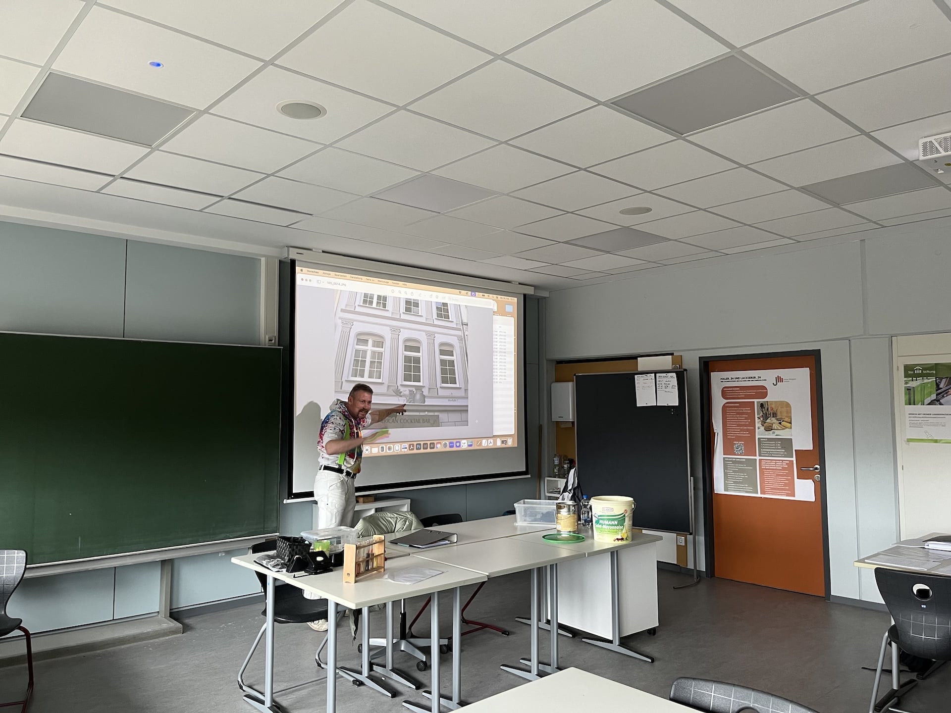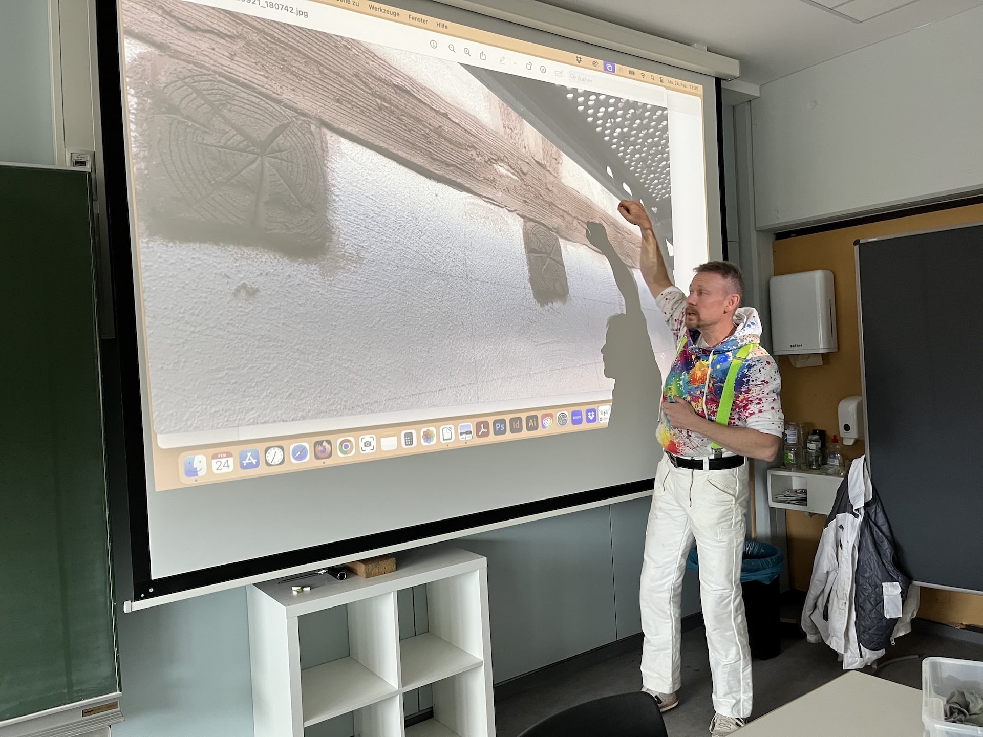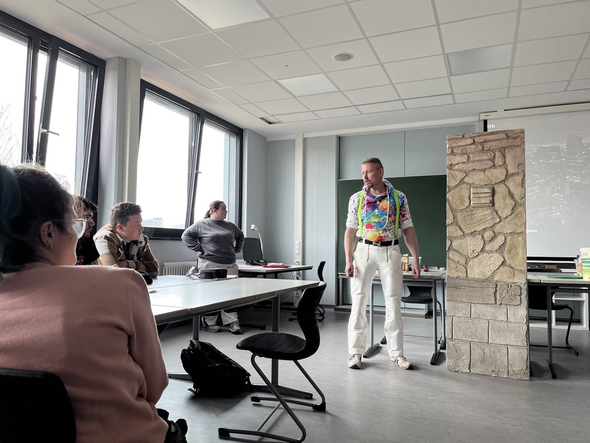 Am 24.02.2025 durfte der Fachbereich Farbe und Raum der Julius-Wegeler-Schule einen ganz besonderen Gast begrüßen: Malermeister Holger Simonis, ein renommierter Experte für Fassadengestaltung, bot den Schülerinnen und Schülern mit Unterstützung seiner Auszubildenden Joana einen spannenden Fachvortrag mit Workshop, der sowohl Theorie als auch Praxis miteinander verband.