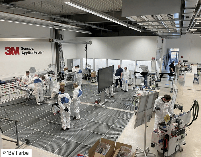 Das Lehrkräfte-Team des berufsbildenden Unterrichts der Fahrzeuglackierer-Klassen der Julius-Wegeler-Schule, Mario Francesconi und Susanne Kleiner, haben am 4. und 5. November 2024 mit 12 weiteren BerufsschullehrerInnen aus ganz Deutschland an einer sehr praxisnahen Schulung im Trainings- und Anwendungszentrum (TAZ) der 3M Deutschland GmbH in Neuss teilgenommen.
