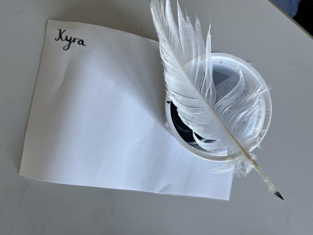 Zu Beginn des Workshops stellte Herr Simonis die Geschichte und Bedeutung der Kalligraphie vor. Nach der Einführung durften die Teilnehmenden selbst kreativ werden. Ausgestattet mit Federn und Pinseln erlernten sie Schritt für Schritt die Grundtechniken der Kalligraphie. Unter der Anleitung von Herrn Simonis entstanden erste eigene Schriftzüge, bei denen Präzision, Geduld und ein Gespür für Ästhetik gefragt waren.