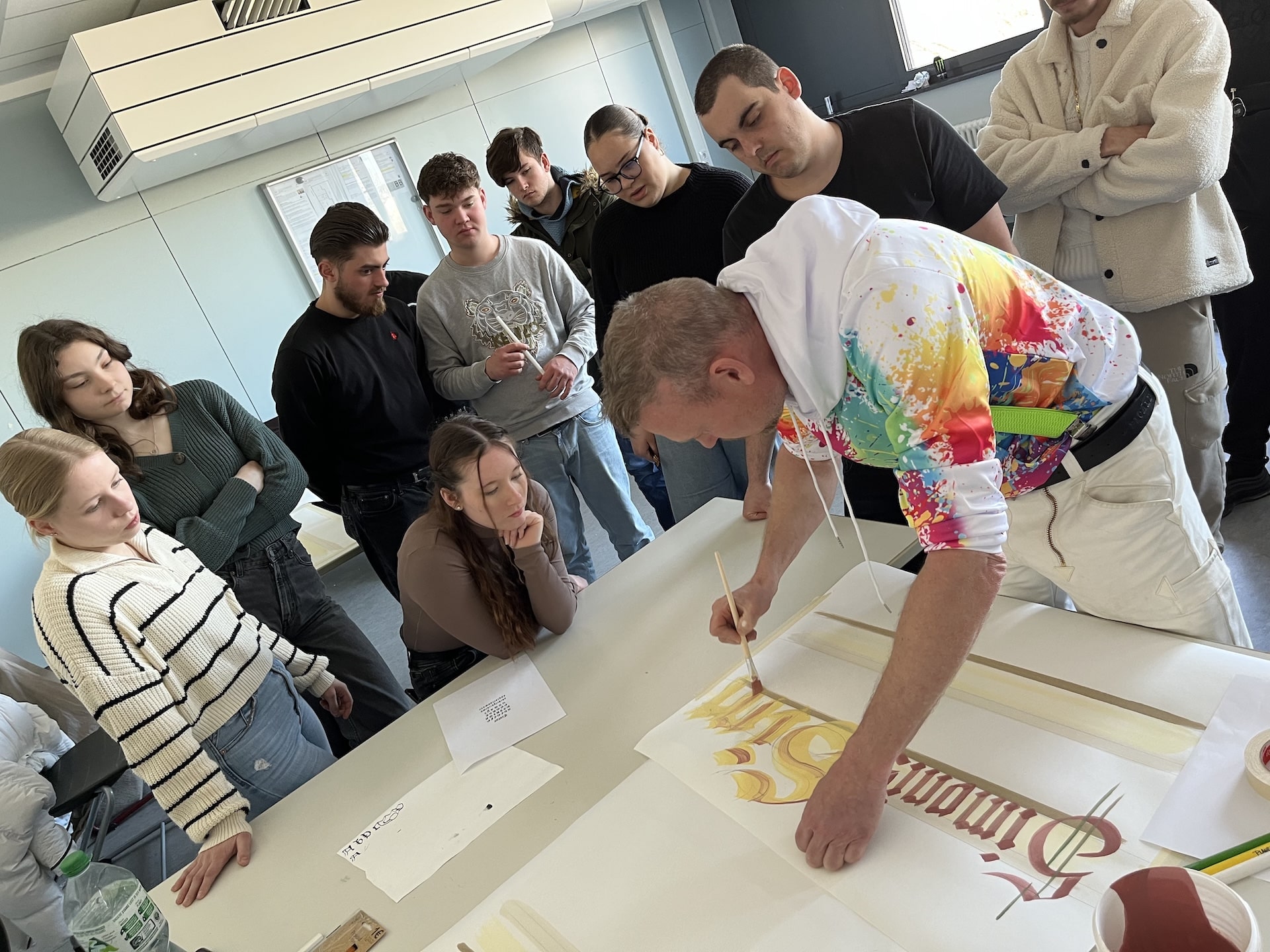 Ende März 2025 stand für die Schülerinnen und Schüler des Fachbereichs Farbe und Raum der Julius-Wegeler-Schule ein besonderes Highlight auf dem Stundenplan: Malermeister Holger Simonis, bekannt für seine Expertise in traditioneller und moderner Kalligraphie, war zu Gast und leitete einen inspirierenden Workshop rund um die Kunst des schönen Schreibens.