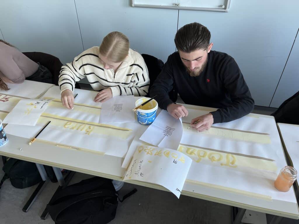 Der Fachbereich Farbe und Raum bedankt sich herzlich bei Herrn Simonis und seiner Auszubildenden Joana für diesen kreativen und lehrreichen Workshop. An diesem Tag wurden nicht nur handwerkliche Fähigkeiten geschult, sondern auch die Begeisterung für die Kunst des Schreibens geweckt – ein Erlebnis, das sicherlich lange in Erinnerung bleiben wird.