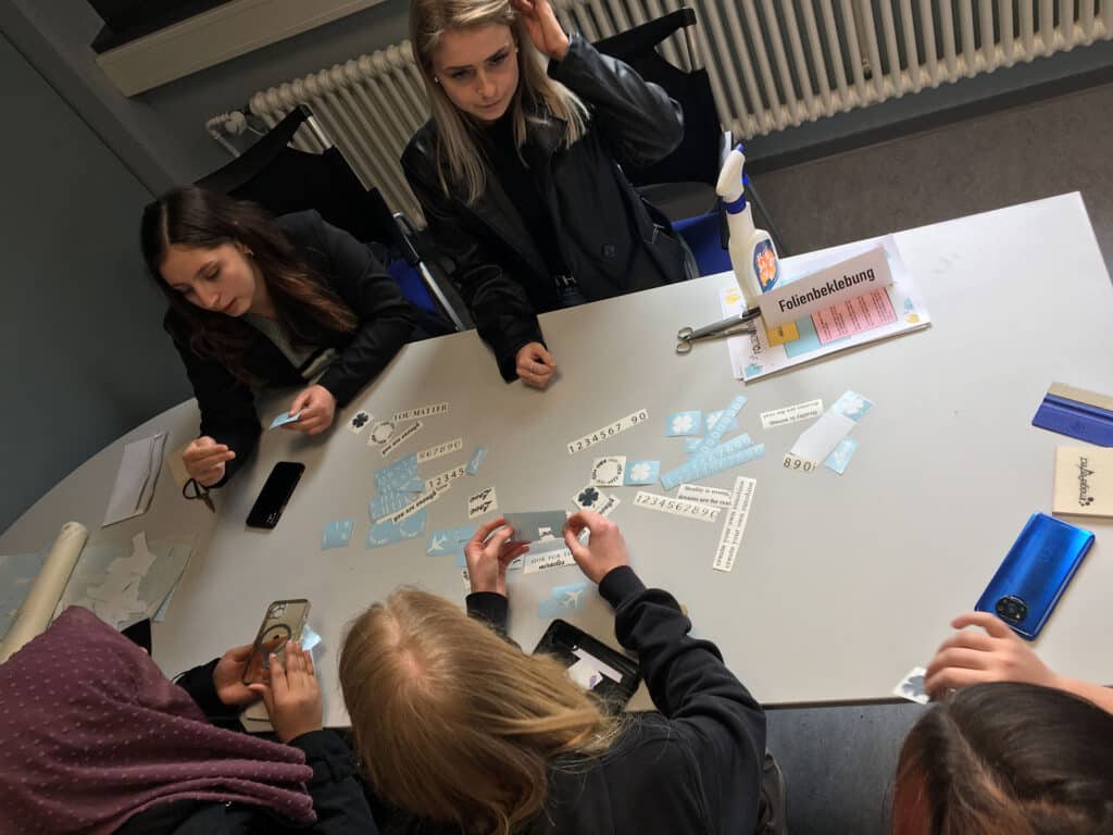 Die Gestalter_innen für visuelles Marketing boten ihr selbst erstelltes Workshop-Angebot an: Folienbeschichtung auf Handyhüllen, das Dekorieren von Schaufenster-Puppen und Räumen war hier Programm.