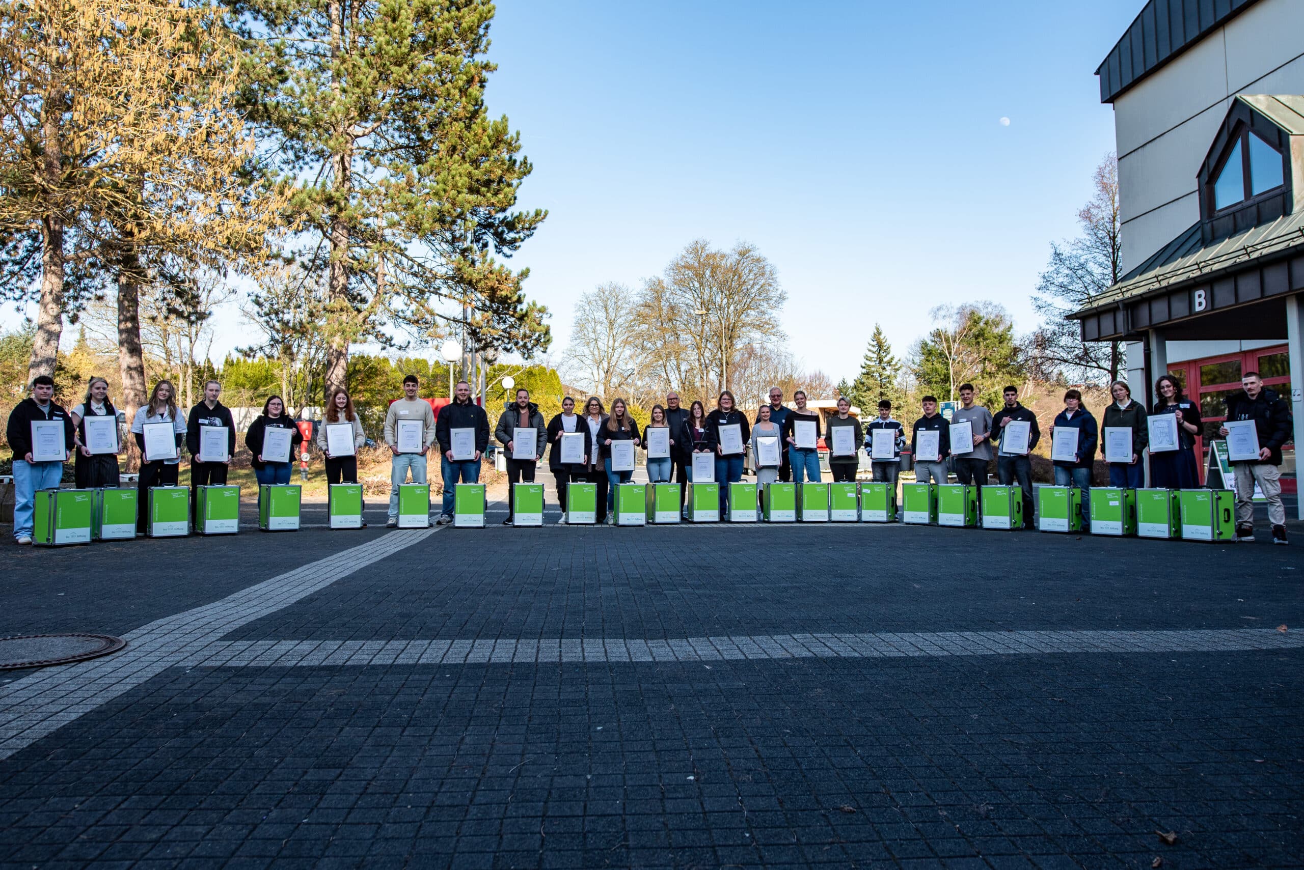 Volle Leistung, voller Koffer beim STO-Bestenwettbewerb 2026! Für 24 Auszubildende und unsere Schülerin Joana Lang (Klasse BSML23a & Malerbetrieb Holger Simonis, Alken) wurde ein grüner Werkzeugkoffer in Fulda zum Zeichen ihres Könnens und zum Startpunkt für neue Ideen im Handwerk. Sie erhielt den begehrten sowie hochwertigen Werkzeug-Koffer am 27. und 28. Februar 2026 durch die Sto-Stiftung. Neben der Kofferübergabe erlebte sie ein herausragendes Programm, das Wissen und Praxis verband. Die Maler- und Lackierer-Azubis waren hier nah an der Praxis und tauschten sich direkt mit verschiedenen Fachleuten aus. Ein besonderer Programmpunkt führte die Gruppe zur Propstei Johannesberg gGmbH. Dort erlebten die Teilnehmenden, wie Denkmalpflege und Altbauerneuerung funktionieren. Sie sahen, wie traditionelles Handwerk und moderne Techniken zusammenfinden.